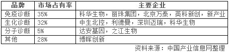 国内IVD细分市场份额和主要龙头企业